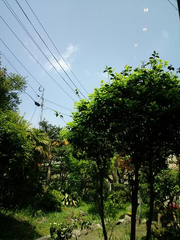可愛い小鳥が近くの木に休みに(実がなってるときは食事に)来たり、わんこが