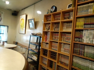 店内にはマンガがたくさんあります。サラリーマンの方々をよく