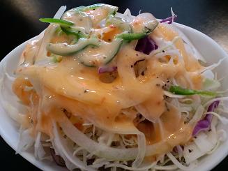 まずはサラダ。サウザンドレッシングの上にピリッと黒胡椒