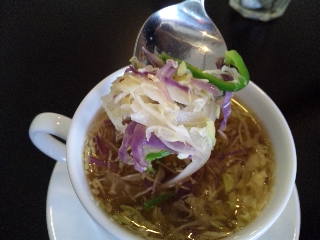 野菜がシャキシャキしてるんですっ。スープサラダ(?)とでも言うような。意外と量があって食べ応え(飲み応え)が