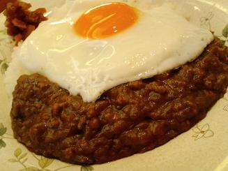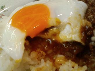 上にのってる目玉焼きをぐちゃっと潰して食べたら美味しいよ!と