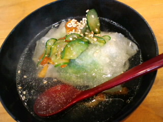 あつあつのお出汁につかってるちょっとぴりからお茶漬け風。