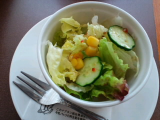 テーブルに着くとすぐにスープとサラダが運ばれてきました。