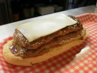 飯塚バーガーの豪華版!ジューシーパテが2枚とスライスチーズでボリューム満点!