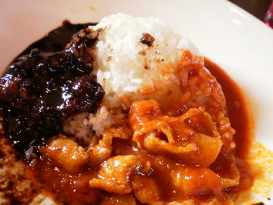 黒糖やココアを加えコクのある黒いソースに仕上げたカレー。