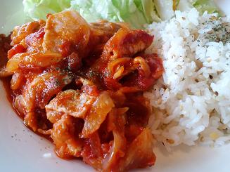 豚肉のトマト煮プレートランチ、こういうご飯ものがあると助かるよね~