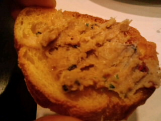 カリカリに焼いたガーリックパンに、イベリコ豚のリエットを