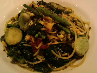 「イサキと春野菜のバジル風味パスタ」