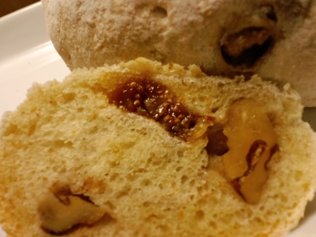 大袈裟ではなく、両手にずっしりとくる重いパン♪くるみといちじくが美味しい。