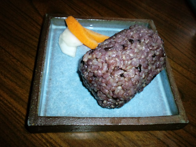 おにぎりは、玄米の黒米、赤米の緑米で、その食べやすさと美味しさに、あっという間におなかの中へ