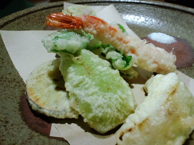 天婦羅は、材料がすべてこだわりの海老や畑で採れたばかりの野菜です♪青いトマトの天婦羅には感動しました