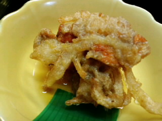 小鉢のかき揚げ。そのほか、小鉢に大根の煮物もありました。