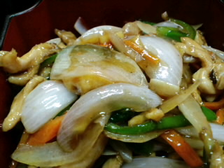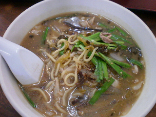 高菜、にら、豚肉、たまねぎ、きくらげ
