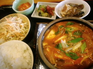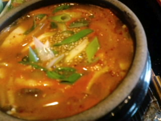 石焼チゲです。ぐつぐつと煮えたぎってます