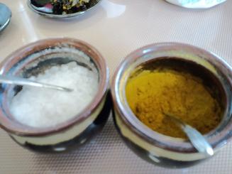 テーブルにはカレーと塩が・・・カレーは天つゆに飽きたら