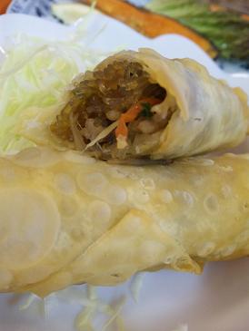 分厚いでしょ。中は春雨やら野菜やらお肉やら具たくさんです