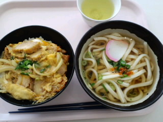 わたしたちが選んだのは「ミニ日替わり丼(親子丼)とうどんのセット」&