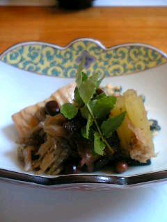 これは蛸とたけのことふきの煮物とうどの皮のきんぴら。