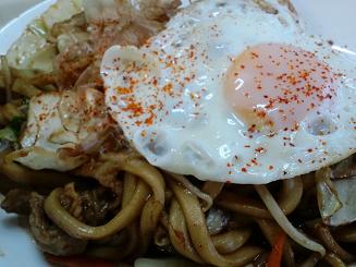 そして焼きうどんの上に目玉焼き¥???も欲しくなって。