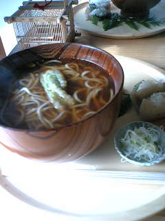 そば定食 ¥1000 はあたたかいおそばかざるそばが選べます。それにこんにゃくすしがつきます。