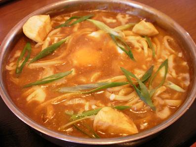 ぐつぐつと、それはそれは熱そうなカレー煮込みうどん。