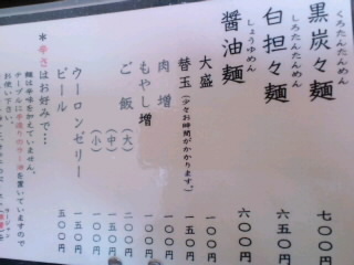 メニューは黒炭々麺と白坦々麺、そして醤油麺です。
